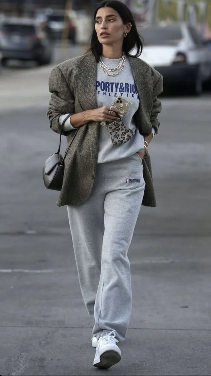 Footwear plays a crucial role in dressing up your sweat set. Swap out casual sneakers for a pair of trendy ankle boots or pointed-toe flats to instantly elevate your outfit. For those willing to make a bolder statement, strappy heels can add an unexpected twist, transforming your look from lounge-ready to a night out on the town. If you prefer to stay on the more casual side, opt for sleek, white leather sneakers, which can provide a polished and fresh look. The right pair of shoes can make all the difference in taking your sweat set from relaxed to refined.